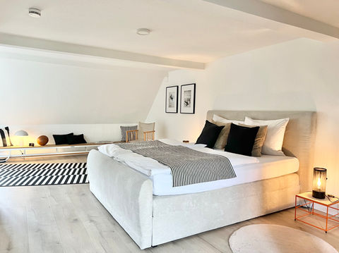 In unserem großen urbanen Apartment 01 in der Detmolder Innenstadt erwarten dich auf 110qm im 1. Stock eines historischen Altbaus insgesamt 4 stylish eingerichtete Zimmer, davon 2 Schlafzimmer mit Kingsize Boxspringbetten, Workspace/Büro mit Schreibtisch, Highspeed WLAN, Gästemappe mit vielen Tipps rund um das Apartment, ein gemütliches Wohnzimmer mit 2 Sofas und einem schönen Esstisch, eine voll ausgestattete moderne Küche im industrial Style, ein individuelles und renoviertes Bad mit Dusche/Badewanne und Waschmaschine und nicht zu vergessen: das separate WC.